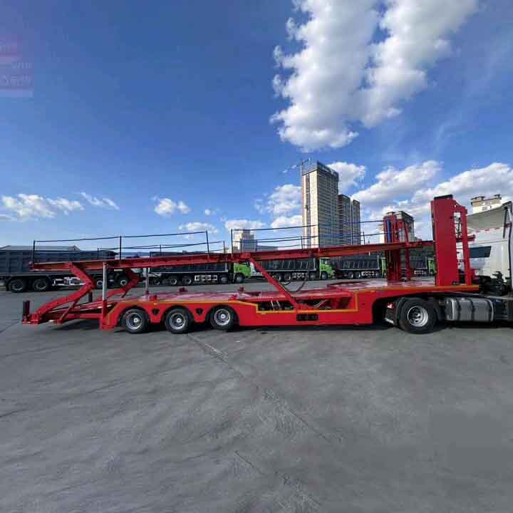 Tá Leathleantóir Luchtaithe Coimeádán Iompróir Gluaisteán 3 Acastóra 8 deartha le haghaidh iompar gluaisteán, déanta as cruach cóimhiotail ard-neart, le cumas ualachiompartha láidir agus buan. Feabhsaíonn a dhearadh struchtúr ciseal dúbailte an éifeachtúlacht iompair go héifeachtach, agus tá sé feistithe freisin le feistí socraithe chun cinn chun sábháilteacht agus cobhsaíocht an ghluaisteáin sa phróiseas iompair a chinntiú. Ina theannta sin, comhtháthaíonn an fheithicil córas monatóireachta Chliste freisin chun monatóireacht fíor-ama agus bainistíocht éifeachtach ar an bpróiseas iompair a bhaint amach, a úsáidtear go forleathan i réimse na lóistíochta feithicleach.Tá an dá thaobh den chomhlacht feistithe le rampaí áisiúla agus feistí glasála sábháilteachta. , atá áisiúil chun gluaisteáin a luchtú agus a shocrú go tapa, ag cinntiú sábháilteacht le linn iompair.