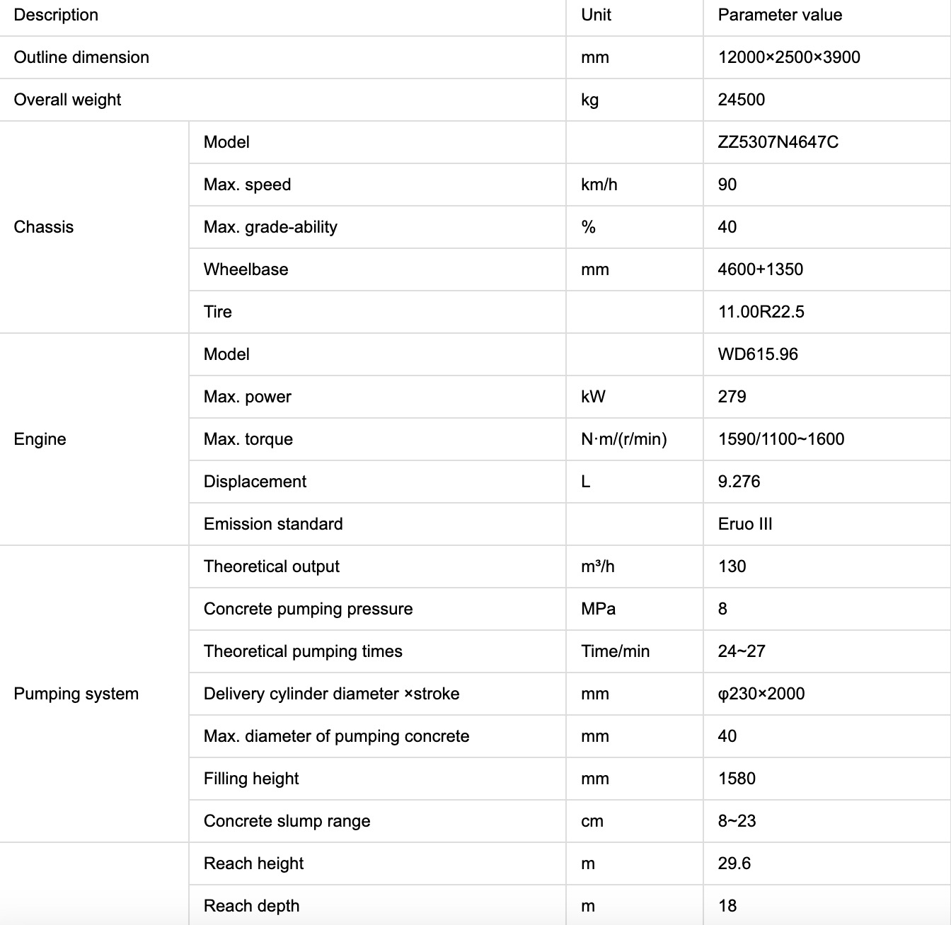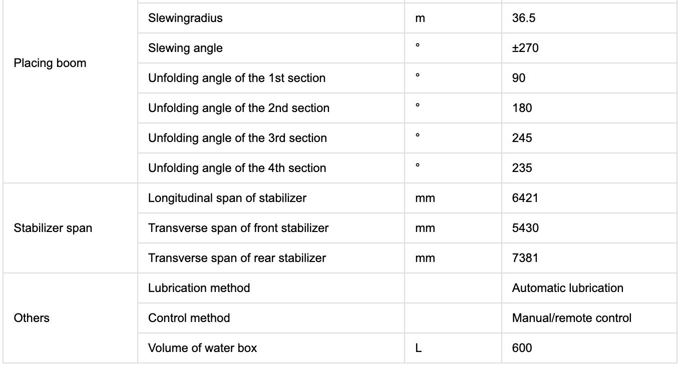 Is trucail chaidéil choincréite ardcháilíochta é an trucail chaidéil choincréite borradh Sany Suited Boom a sheol Sany Heavy Industry, ag comhtháthú teicneolaíocht Putzmeister na Gearmáine. Tá cumais T&F agus déantúsaíochta chun tosaigh aige, úsáideann sé ardteicnící táirgthe, agus cloíonn sé le córas rialaithe cáilíochta dian chun a chinntiú go seachadann gach trucail caidéil feidhmíocht agus iontaofacht eisceachtúil. Tá a borradh tógtha ó chruach cóimhiotail ard-neart, ina bhfuil struchtúr láidir agus friotaíocht tuirse den scoth. Úsáidtear an táirge go forleathan i réimsí éagsúla amhail tógáil foirgneamh, innealtóireacht chathrach, agus tógáil droichid, rud a fheabhsaíonn éifeachtúlacht tógála agus cáilíocht coincréite coincréite.