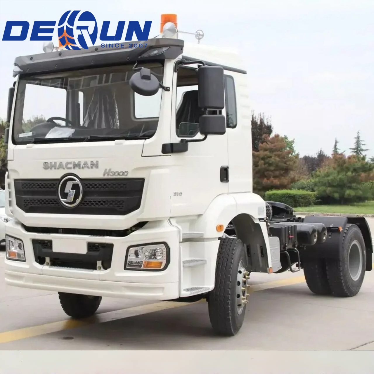 Tá trucail tarracóra ceann Shacman H3000 4x2, le geilleagar agus iontaofacht, feistithe le WP10.340E22 EURO II, WP10.380E22 EURO II nó WP12.400E201 EURO II ENGE, le héileacaptar idir 340 agus 400 HP, cumhacht láidir, oiriúnach do choinníollacha oibre éagsúla. Tá giarbhosca 12-luas níos tapúla feistithe le trucail tarracóra ceann Shacman H3000 4x2, a bhfuil ard-éifeachtúlacht tarchuir agus athrú réidh fearas aige, agus is féidir leis an éifeachtúlacht iompair a fheabhsú go héifeachtach. Glacann an CAB le fonnadh speisialta H3000 Series le struchtúr láidir agus spás fairsing, agus tá roinnt cumraíochtaí compoird ann, amhail suíocháin ionsúite aeir, fionraí aeir lán-phointe, rollóirí fuinneoige leictreacha, agus rialú uathoibríoch aeráide uathoibríoch, srl.