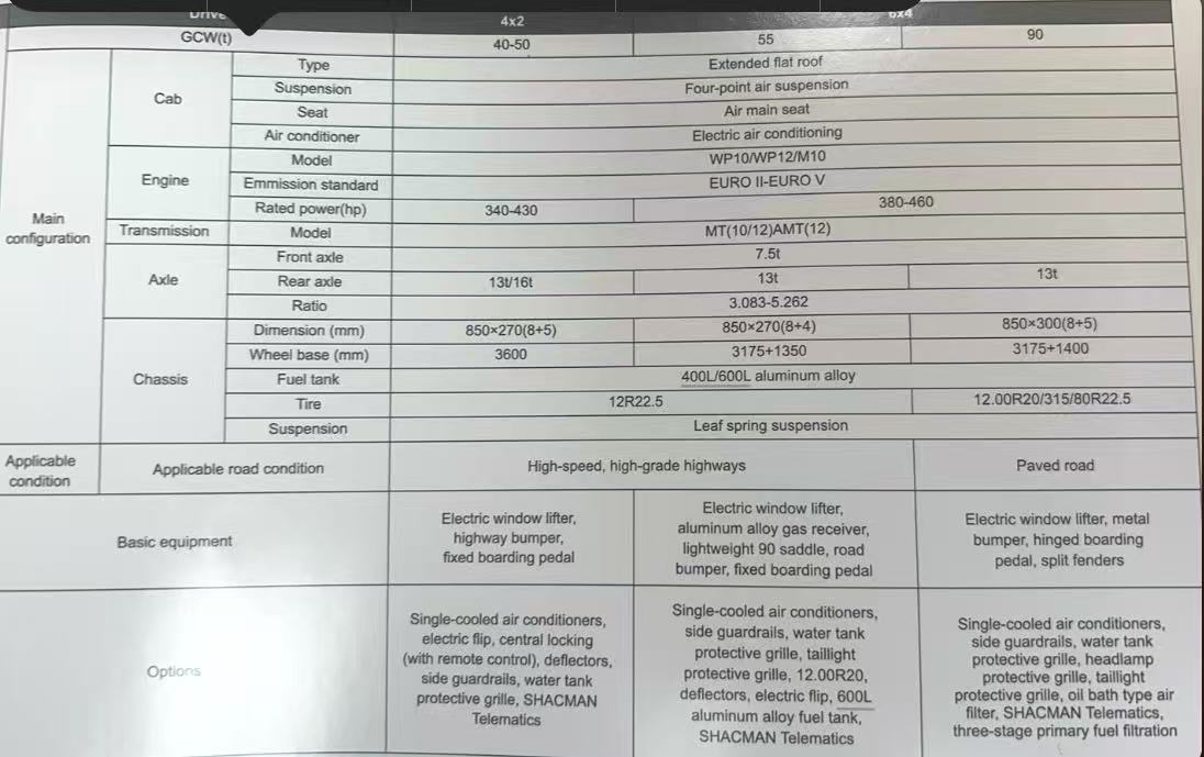 - Inneall: Shacman H3000 6x4 & 8x4 Tá trucail tipper dumpála feistithe le hinnill Weichai, a sholáthraíonn aschur cumhachta láidir.