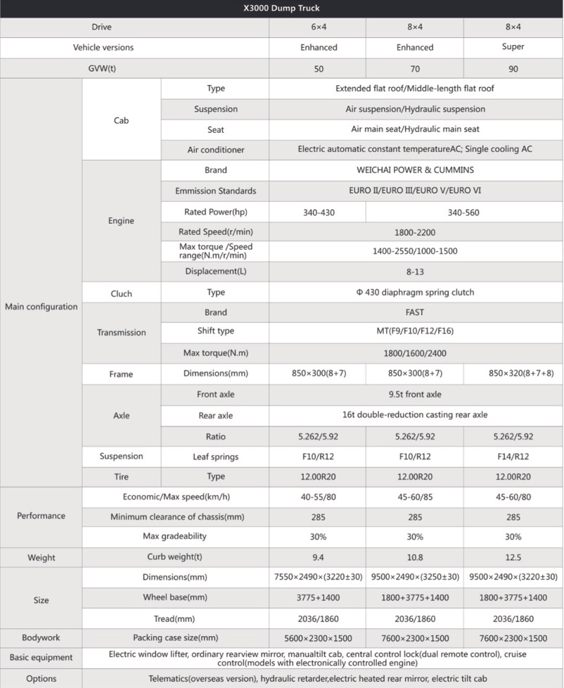 Srpski језик Tá inoiriúnaitheacht ard ag Truck Dumpála Shacman X3000 6x4 8x4: seachadann an t-inneall íseal-chasmhóiminte tús tapaidh agus cumas dreapadóireachta den scoth chun dul in oiriúint do gach cineál coinníollacha bóthair innealtóireachta crua.